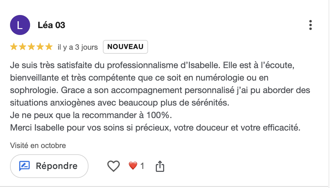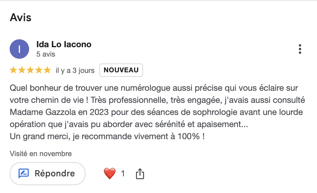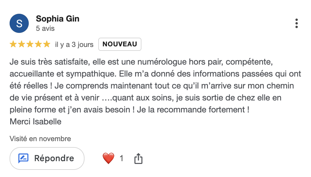 Ma particularité est de ressentir profondément le message des nombres et d’y associer les messages de mon guide et de vos proches disparus pour vous délivrer les informations nécessaires à votre évolution.